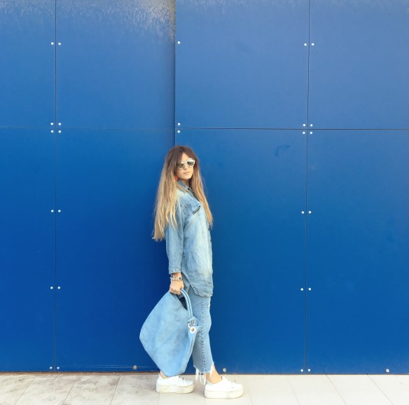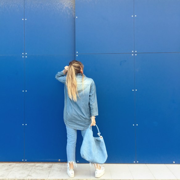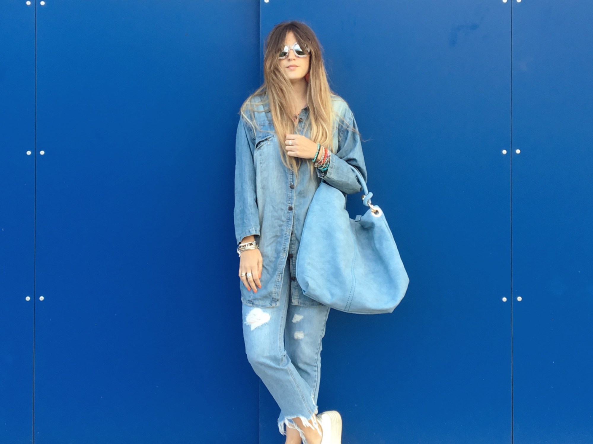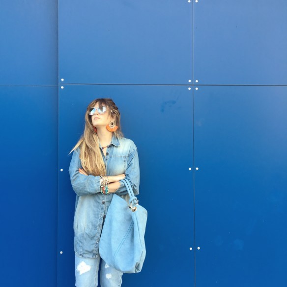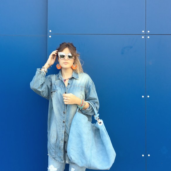 Blue is my favorite color, and denim of my must fabrics to dress. In my closet you won’t miss jeans, jackets and other denim garments. Comfort, versatility and timelessness define it for me. For that reason, I love that the denim squared is one of the trends for this SS18! For the first days of good weather, I opt for cropped ripped baggy jeans with maxi shirts and, to not break the chromatism, XL bag in light blue. The touch of color is given by the orange fringe earrings and the sunnies. Do you like the total denim?