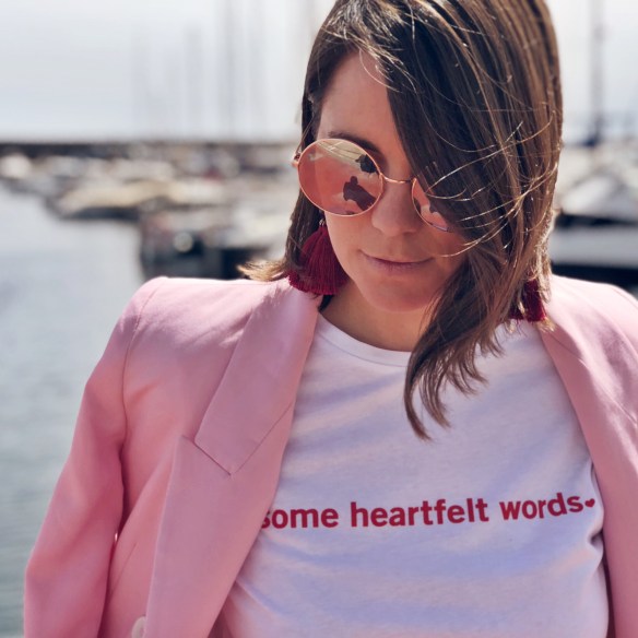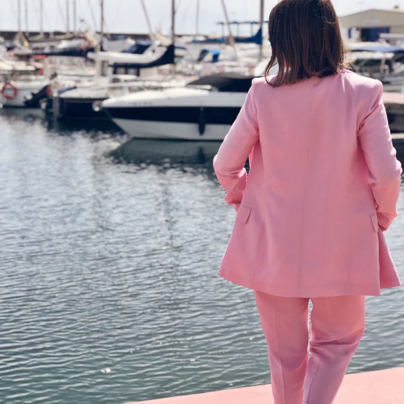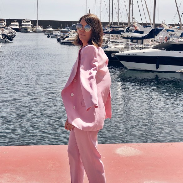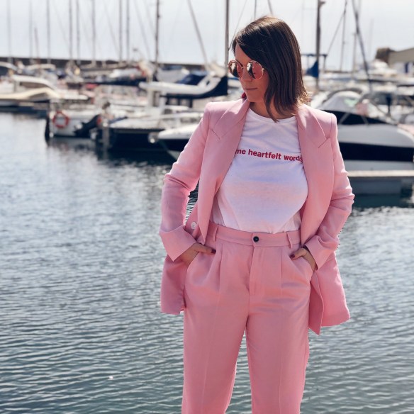 Nunca digas nunca… Y me diréis: ya te lo dije. Pues sí, porque aquí me plantifico yo con todos mis «nuncas»: un traje rosa, con una camiseta blanca con mensaje en rojo, gafas de sol polarizadas y lo combino todo en clave sporty con bambas. ¡Nunca digas nunca!