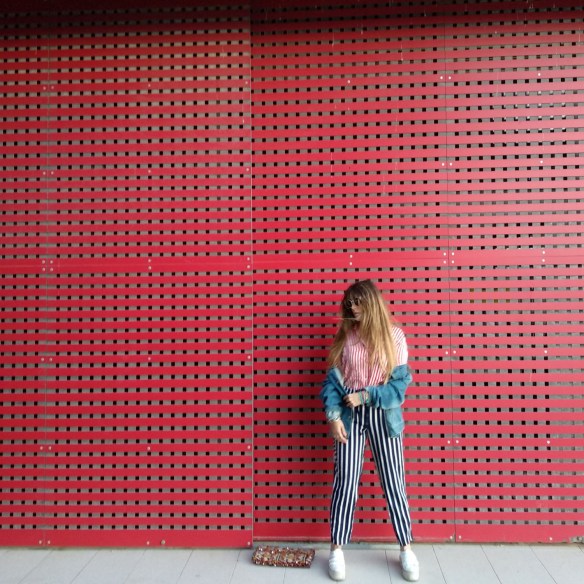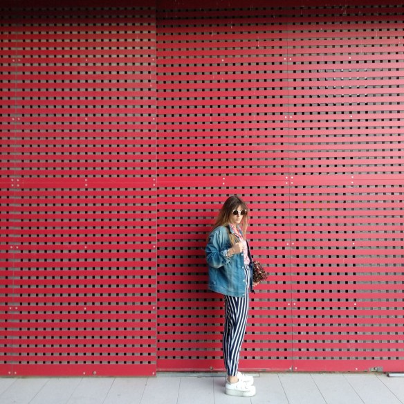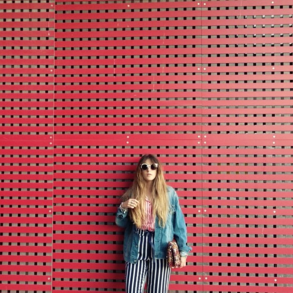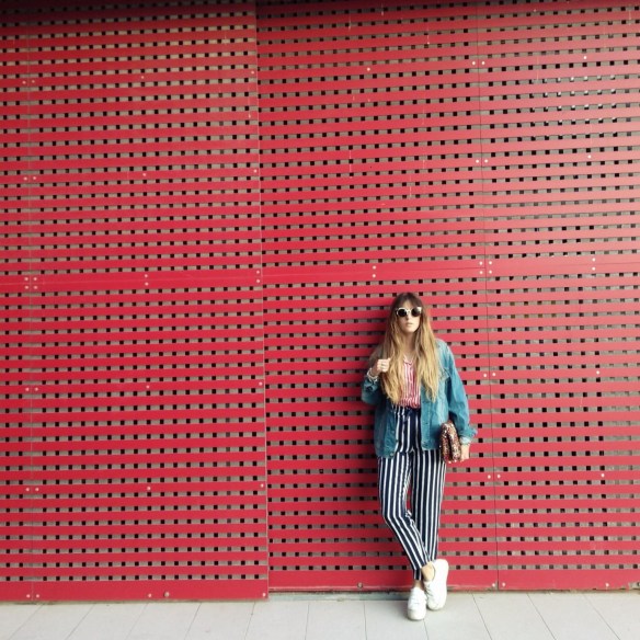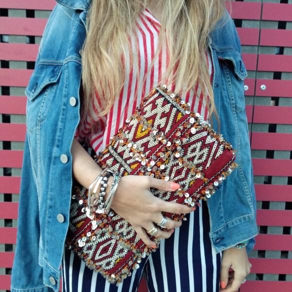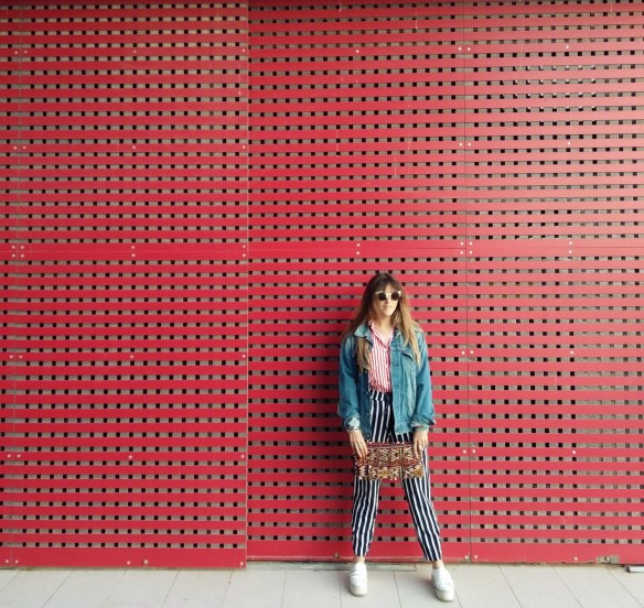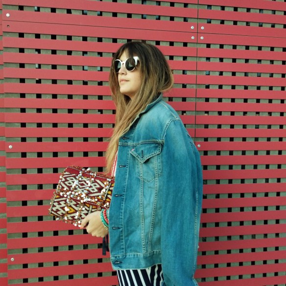 I’ve always liked the roll of mixing colors and prints in summer as it always gives me energy. My metamorphosis as the temperatures rise makes me pass from the total black look to vivid colors. In the middle of Spring, I dare mixing the striped print with the ethnic print and denim. High-and-wide-legged trousers, shirt on the inside, white cat eye sunglasses and my mom’s Levis’ jacket make up the look. Do you dare to mix & match?