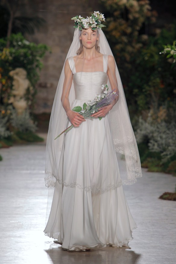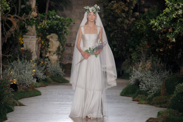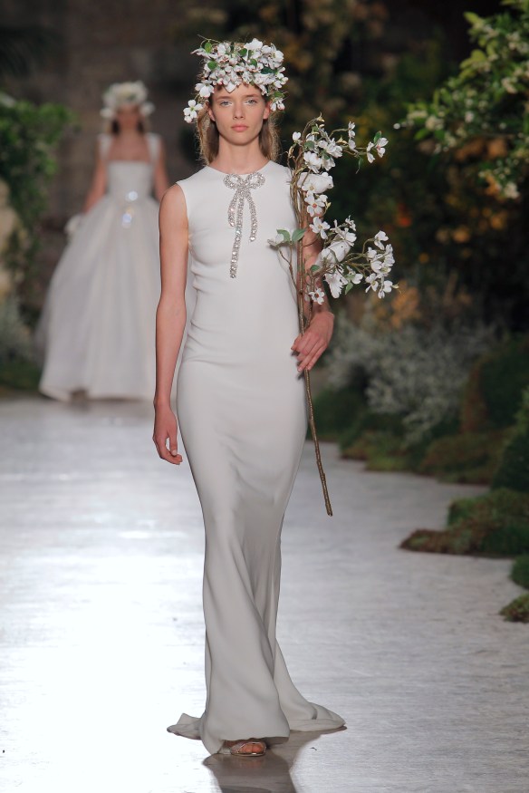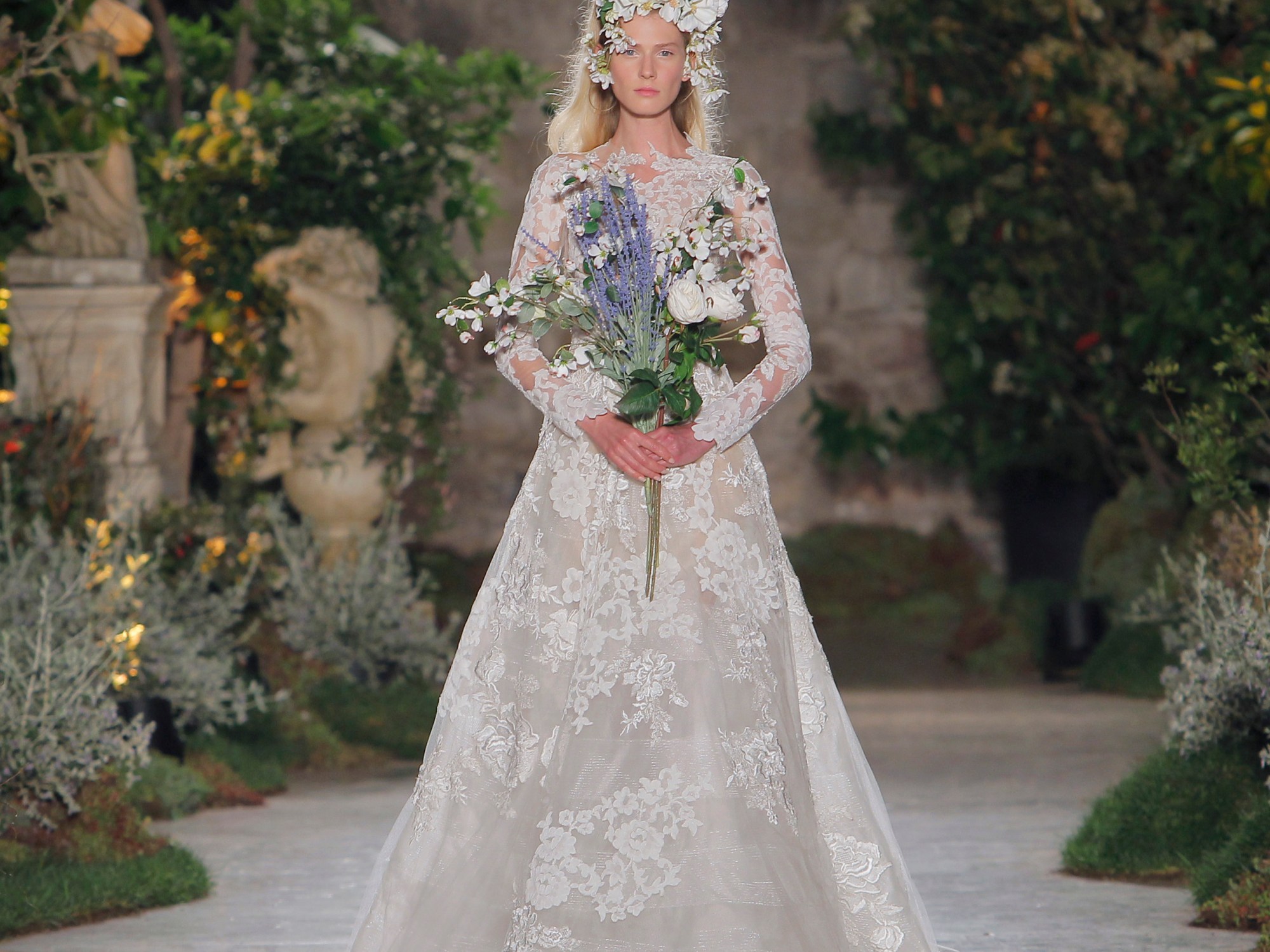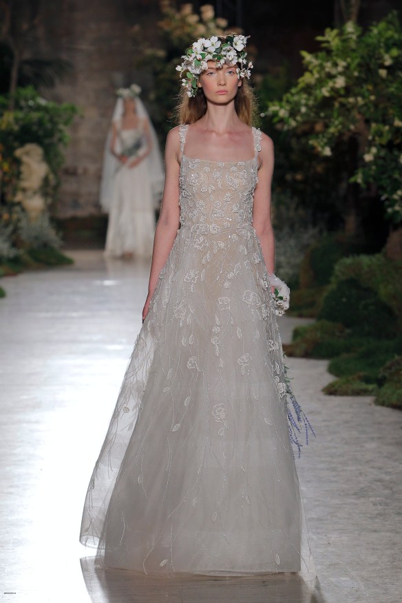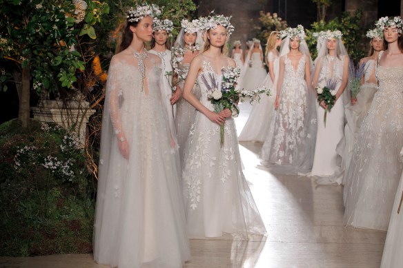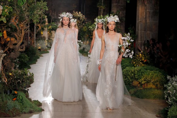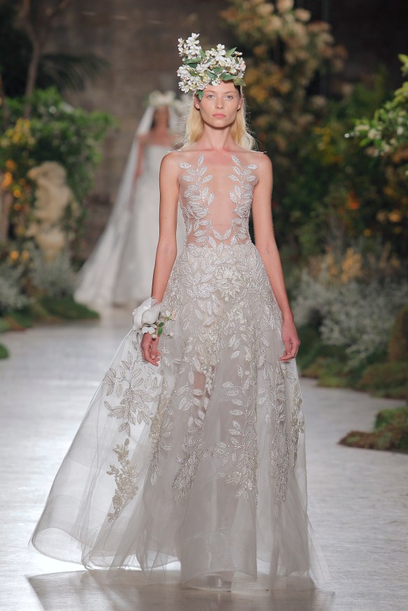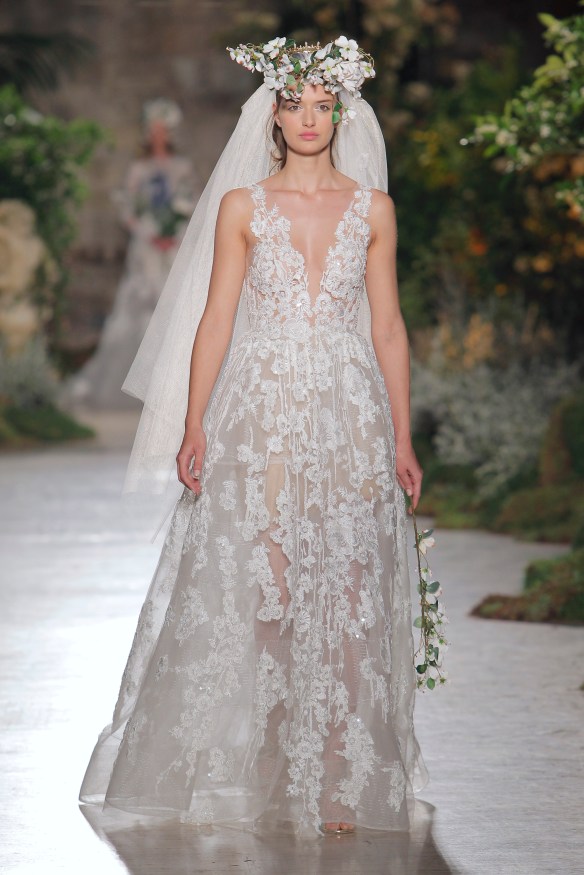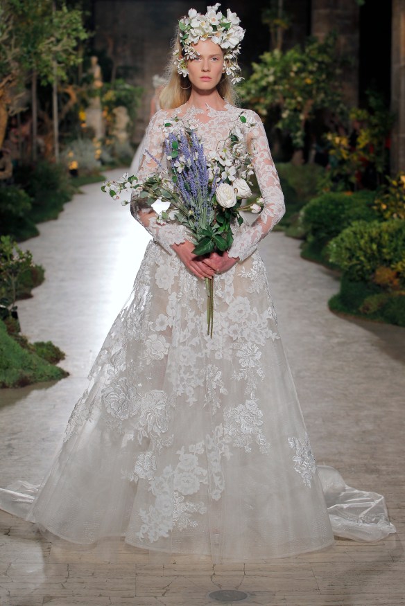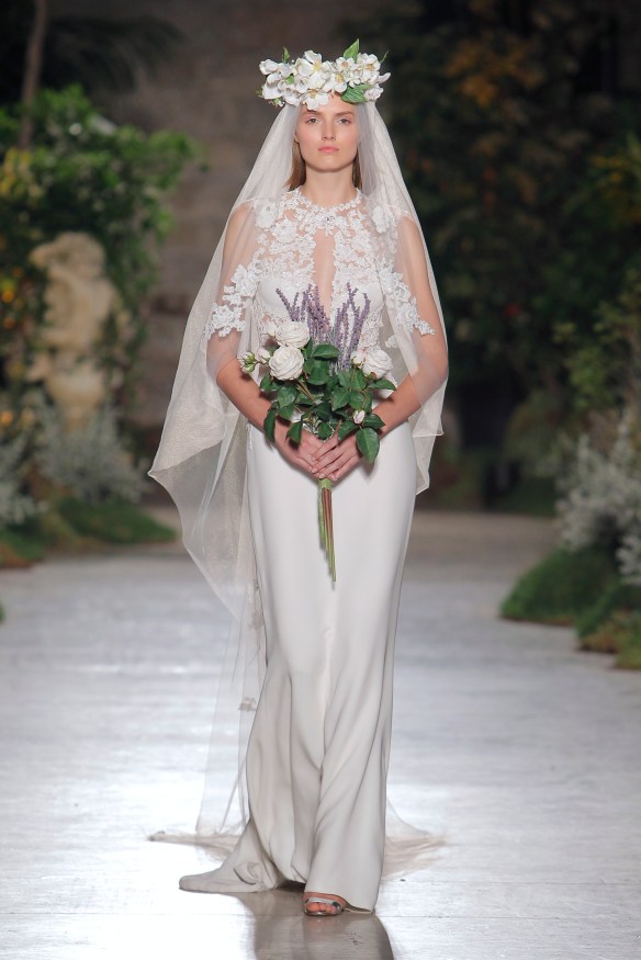 En su colección «El Secreto del Amor es el Amor», inspirada por la obra «El Profeta» de Khalil Gibran, la diseñadora ha sabido transmitir la poesía del amor y la emoción mística, con creaciones que desprenden la magia de su Oriente Medio natal y están cuidadosamente elaboradas con líneas delicadas y repletas de bordados impecables, pequeñas cuentas brillantes, transparencias y tuls dignos de una princesa medieval o incluso de una ninfa. La sensualidad y feminidad personificadas. ¿La guinda del pastel? Los ramos campestres, los brazaletes florales y las tiaras florales que lucían estas ninfas de cuento, en los que si te fijas, se pueden apreciar pajaritos blancos también.