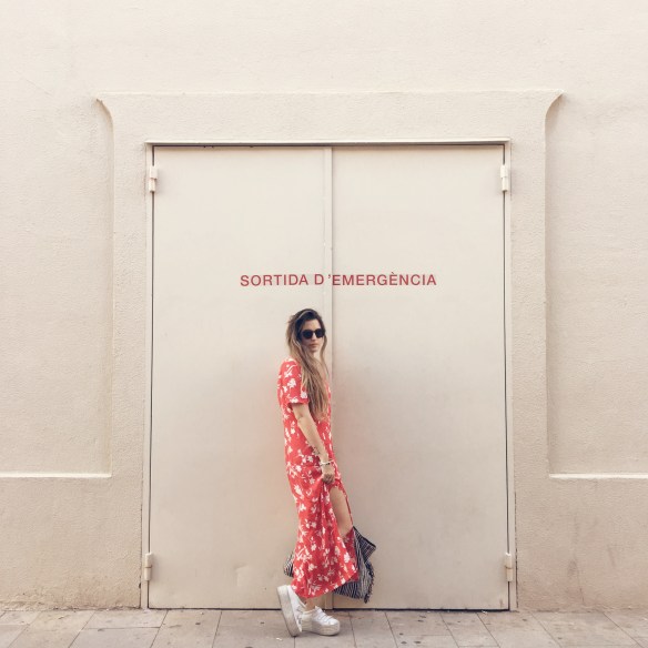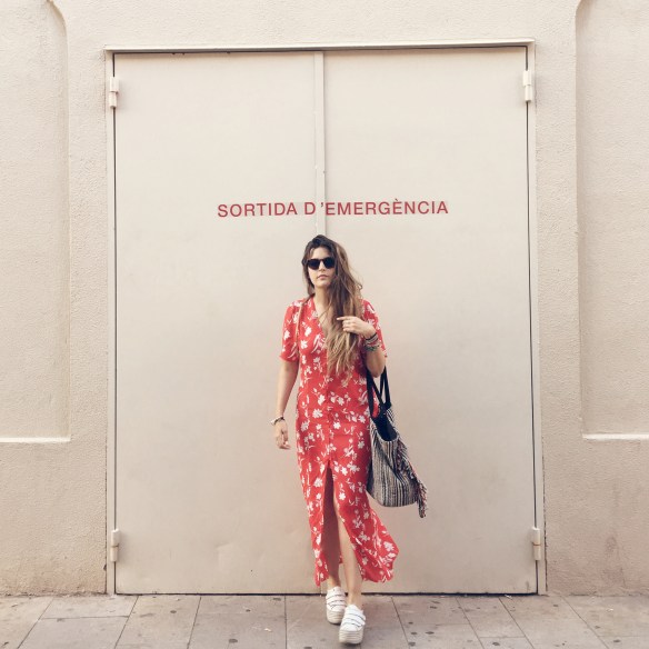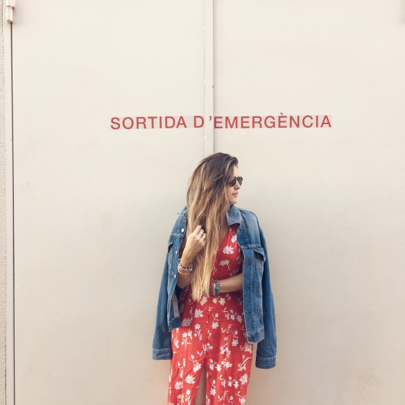 Crec que arribat a juny, tots necessitem sortides d’emergències, aquestes d’escapar-se i desconnectar. No passar calor o gaudir del mateix sota el sol i l’aigua. Sortida d’emergència és un nou capítol d’un llibre, una peli amb el mòbil desconnectat, un sopar amb una sobretaula fins a la matinada sense saber quina hora és… Sortida d’emergència és un vestit vaporós durant el dia perquè mors de calor i portar al maxi bolso una caçadora texana (la millor opció per a juny) per quan de sobte fa fred. Per això aquesta opció: vestit vermell amb floral print amb botons fins als genolls i bambes. Pot existir combinació millor per a aquest mes?