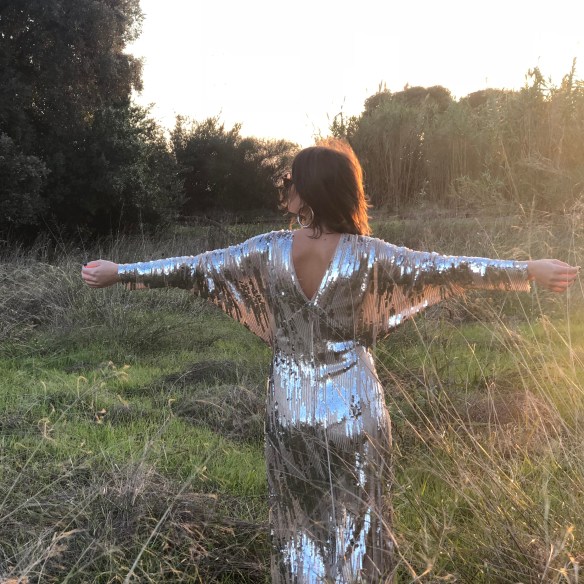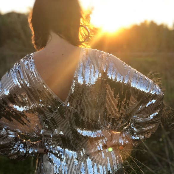 The End. End of year 2018 and end of a beautiful stage with the blog. I hate farewells, there’s nothing that seems sadder to me. But sometimes it is important to know when one should get off the train. And I get off the train to say goodbye to the year and to this stage in this Japanese style dress, in silver shiny paillettes, and I put it on backwards because I like the back necklines more. If I have learned something in these years, it is that we should not take anything for granted, the key lies in knowing how to see beyond… It’s the so-called lateral thinking.